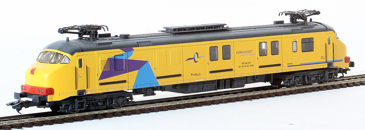 Prototype: Class BRT-08 JIM powered rail car for test purposes, owned by the firm Eurailscout Inspection & Analysis b.v., based on the class mP 3000 powered postal rail car. Yellow basic paint scheme as a railroad maintenance car. The car looks as it currently does in real life.