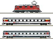 Prototype: After the Second World War, the famous crocodiles or other older types still dominated the Swiss Gotthard Line. In order to take account of the increased train weights and the desire for higher speed, the Swiss Federal Railways commissioned SBB to develop an axle-less bogie electric locomotive. Technically, this should be based on the successful Ae 4/4 of the Bern-Lötschberg-Simplon Railway BLS. SLM and BBC were in charge, handing over the pre-production locomotives Ae 6/6 11401 and 11402 to the SBB in 1952. The six drive motors of all Ae 6/6 deliver 4300 kW and accelerate them to 125 km/h. The internationally proven BBC spring drive was chosen as the drive. As the new pride of the Swiss railways, the locomotives were provided with chrome strips all around, with a shorter, externally slanted chrome trim on the front sides to the left and right of the Swiss cross, called “snout” by the Swiss. The series locomotives differed significantly from the pre-production locomotives in that they had modified roof equipment with a new main switch and the absence of doors next to the locomotive driver's position. Since the locomotive body began to rust under the chrome strips after several years, the SBB ordered the Ae 6/6 without chrome decoration starting in 1959, starting with the number 11427. In the 1980s, many locomotives were painted red, in the 1990s the driver's cabs were revised, and from 2003 onwards the driver's cabs of the locomotives intended for further use were rebuilt, which meant, for example, that the windshield wiper drives that were previously mounted above the front windows moved downwards. The most striking external change, however, was the repainting of some modernized locomotives in red/blue with large SBB Cargo lettering. By 2013, all Ae 6/6 not intended for museum preservation had been retired.