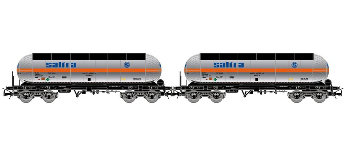 2-piece set of RENFE “Saltra” carbon dioxide tank wagons, silver livery