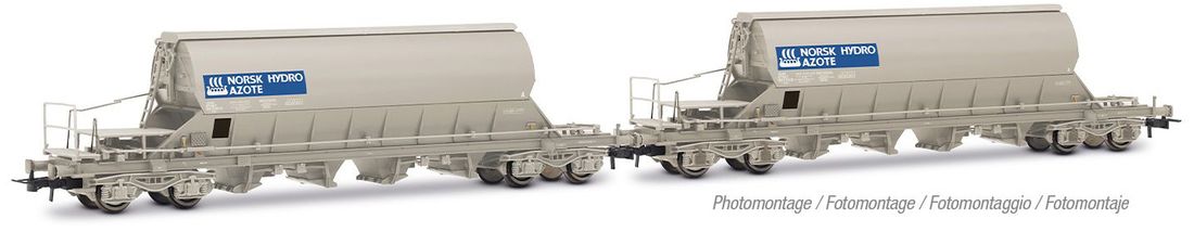 2-piece set of 4-axle Taoos type swivel roof wagons of the SNCFgrey livery “NORSK HYDRO AZOTE”