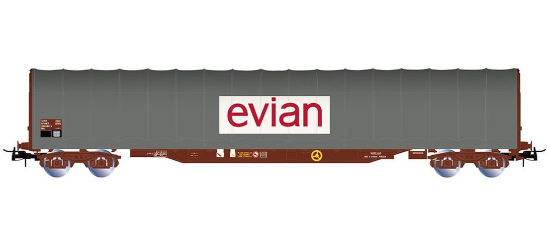 4-axle sliding tarpaulin wagon of the Rils type, “EVIAN” of the SNCFgrey livery