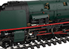 Model: The loco has an mfx+ digital decoder with lighting and sound functions. It also has a controlled high-performance motor with a flywheel, mounted in the boiler. One axle powered, two axles driven by coupling rods. Traction tires. The locomotive and tender are made mostly of metal. Factory-fitted smoke generator with speed-dependent, dynamic smoke exhaust. Dual headlights, digitally controllable. In addition, cab lighting and firebox flickering can be controlled separately in digital operation. Maintenance-free warm white and red LEDs are used for the lighting. With capacitor. Adjustable coupling with a guide mechanism between loco and tender. Tender has a close coupler with a guide mechanism and NEM pocket. The loco can safely negotiate curves with a radius of 437.5 mm / 17-1/4" (radius 2). Brake hoses, imitation screw couplers, and a signal holder are included. Length over buffers approximately 28.4 cm / 11-11/64".