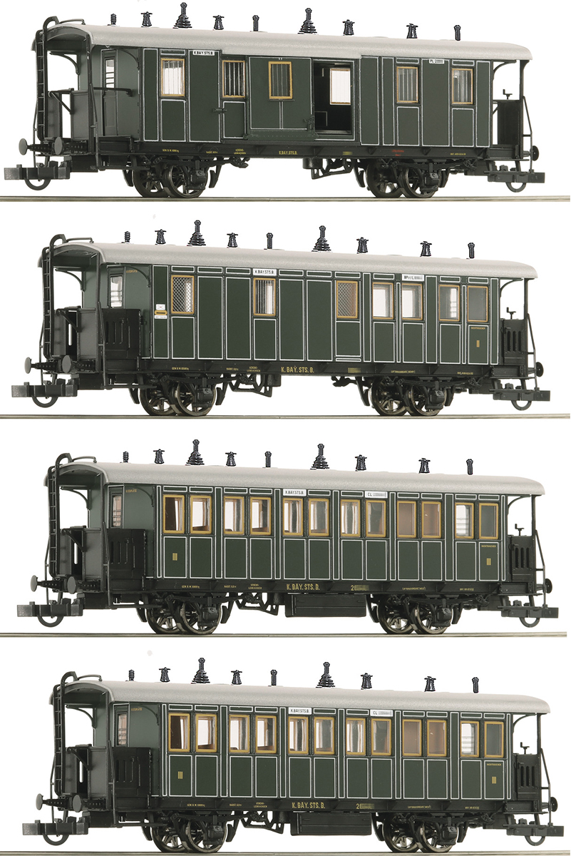 Car set with four local railway cars of the Royal Bavarian State Railways.