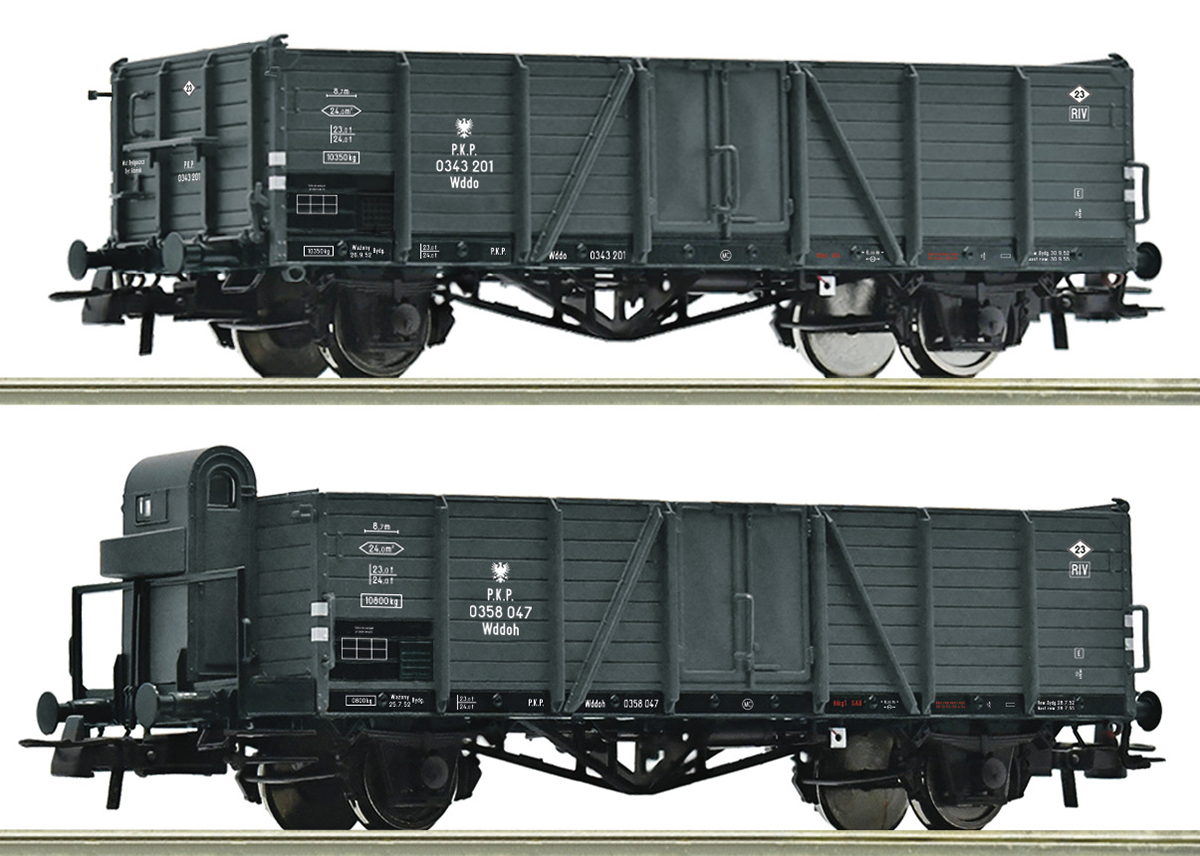 Wagon set with two open freight cars "Villach" of the Polish State Railways.