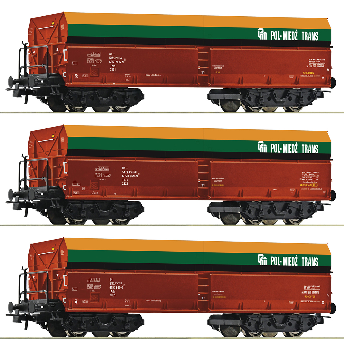 Roco 3-piece set: Self-unloading wagon type Fals of the PMT
