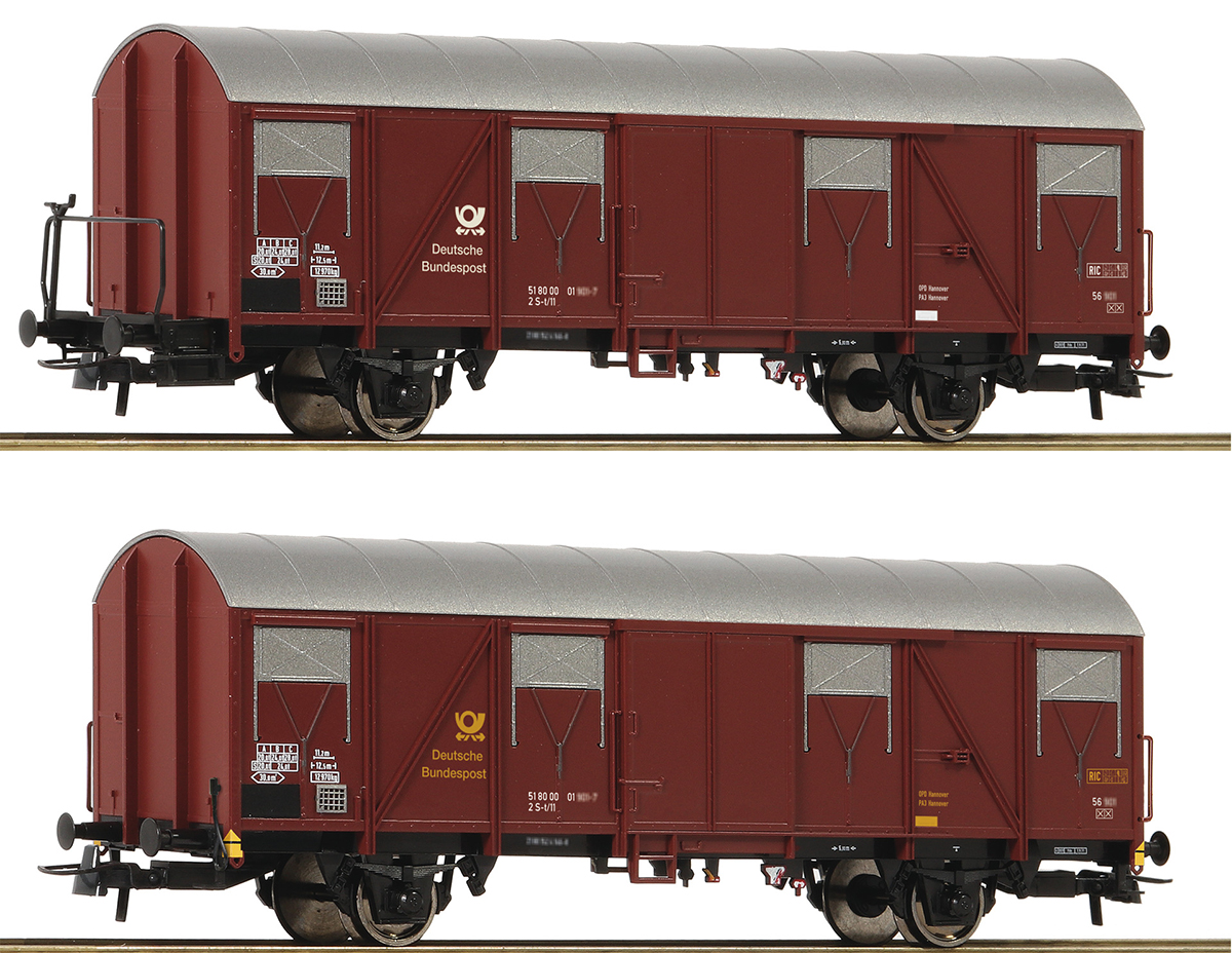 A set of two postal freight cars, type Post 2s-t/11, of the German Federal Post Office.