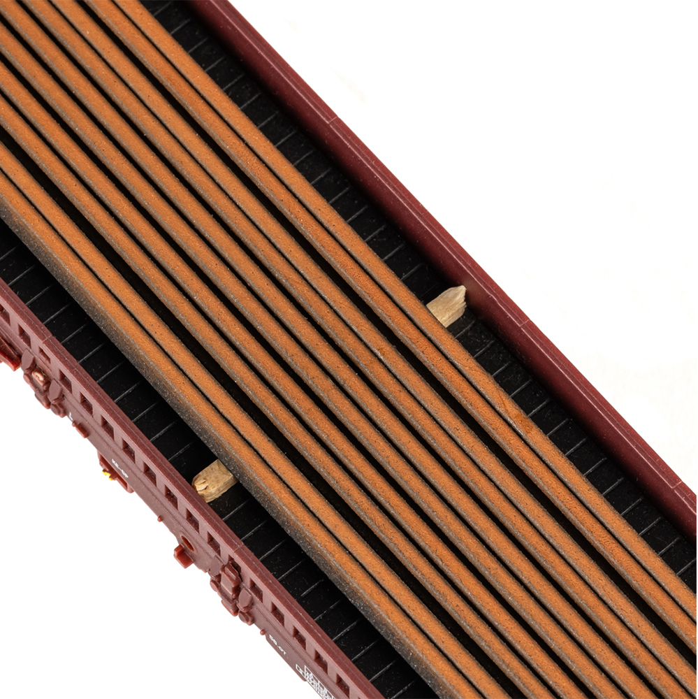 Model: The underbody detailing is specific to the car. The car has type Y25 trucks. They also have many separately applied parts. Both cars are loaded with replica rails. The cars are individually packaged inside a master package. Length over the buffers approximately 46 cm / 18-1/8“. AC wheel set E700150.