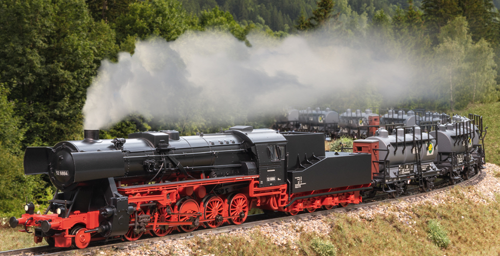 It was the most-produced locomotive type in Europe and the product of a brutal conflict: The German class 52 wartime locomotive. From 1942 onwards, more than 7,000 machines rolled off the production lines of many well-known locomotive factories. It was a simplified but rugged ten-coupled tender locomotive that was designed for universal use. A typical feature of most series was the self-supporting tub-style tender, whose material-saving design allowed it to be produced in large numbers. The Viennese “Steifrahmentender” or “solid-frame tender” is not so well known but equally striking and, with over 1,000 units produced, was widely used. Its wheels were rigidly mounted in a frame, whereas the tub-style tender, like most other tender types, ran on trucks. The class 52 is now a must for model railroaders who are interested in recounting this important chapter in German railroad history on a small scale. Thanks to its unusual appearance and technology, the new Märklin model with its solid-frame tender is a real eye-catcher and an ideal addition to other class 52 locos on your model railroad at home.
