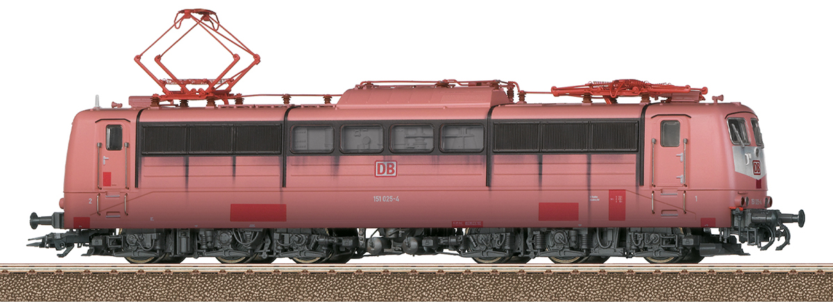 Prototype: German Rail, Inc. class 151 electric locomotive. Orient red basic paint scheme. Road number 151 025-4. The locomotive looks as it did starting in 1998. Length over the buffers 22.4 cm / 8-13/16“.