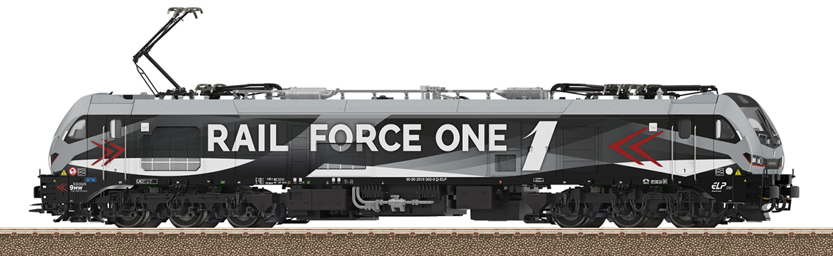 Prototype: Class 2019 dual power locomotive (Stadler Euro9000) of the European Locomotive Pool, Inc. (ELP), leased to Rail Force One. Gray/black basic paint scheme in attractive RFO design. Road number 2019 302-9. The locomotive looks as it did starting in 2023.
