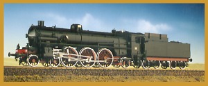 The Italian Class 691 was a gorgeous steam locomotive, considered by many collectors to be one of the finest Pacific's ever developed. The 691 was joint venture between "Kraus Maffei" the Bavarian locomotive builder and "Breda" the Italian locomotive builder.The 691 incorporated the "Maffei's"patented four cylinder drive system making it one of the fastest Pacific's ever built. The 691 was used for heavy express service between Milan and Rome. Micro-Metakit's model is simply remarkable! It features a finctional and replicated 4 cylinder drive, brushless, ironless "Faulhaber" motor, full cab interior, functional speedometer cable, functional boiler hatch with inner boiler details. The 691 is handmade out of brass and has too many technical and optical details to list. Since they were delivered in January of 1998, only two versions are still available. We only have a few of each version in stock, so order soon. View a larger image of this exquisite model (32kb). |