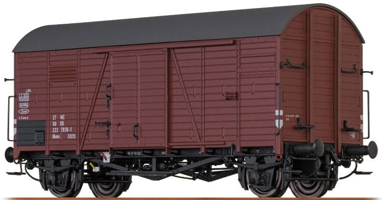 The introduction of welding technology from 1933 onwards increasingly made the Deutsche Reichsbahn (DR) switch to joining the components of their wagons by welding instead of riveting. One of the main advantages of welding technology was the weight saving which could then be used for increasing the cargo weight. In order to respond to the demand for higher speeds in part-load traffic as well, the DR developed the "Gs Oppeln", starting in 1936. Due to its wheel base of 6000mm, its maximum permissible speed could be fixed at 90 km/h. In addition to the missing junction plates that were made superfluous by the welding technology, this wagon type mainly differed in the pointed truss frame required due to the long wheel base. The increasing need for goods wagons due to the war led to the mass production of the "Gs Oppeln" from 1938 onwards. As a result, about 28,000 wagons without and 6,100 wagons with handbrake were built in the following years. Many of the wagons were equipped with a steam heating or even an electric heating system and could therefore be used as part-load wagons in semi-fast and express trains without any problems. After the end of World War II, the wagons were distributed all over Europe and could be found, for example, in the service of the railway administrations of Austria, Czechoslovakia, Poland, or Belgium. The reorganisation of the vehicle numbers of the young Deutsche Bundesbahn in the early fifties of the last century led to the change of "Gs Oppeln" into "Gms 30". Some of the wagons even came into the EUROP wagon pool, thus serving on an international basis. With the emergence of the first newly built goods wagons at the end of the fifties, a decision was made against an expensive general overhaul of the wagons. When the UIC numbering system was introduced, the existing wagons were re-numbered into "Glms 200", and some of them survived until 1979.