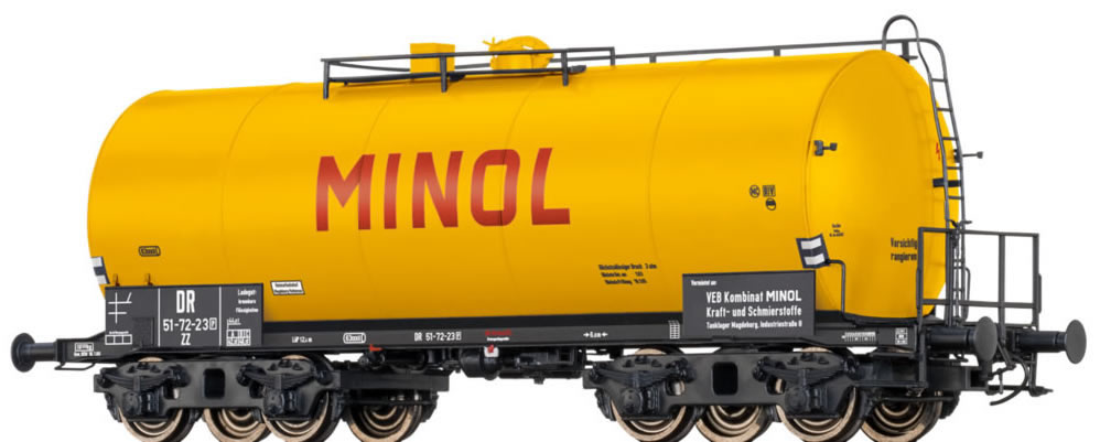 In 1939/40, the Köln-Deutz (Cologne-Deutz) and Uerdingen wagon factories each constructed a quadruple axle tank wagon in a lightweight design. Directly related to this, Westwaggon also manufactured the prototype of the tub-style tender, with which the war locomotives belonging to the BR 42 and 52 were coupled. The development was primarily driven by the military since it was necessary to transport enormous amounts of crude oil and fuels for replenishment purposes. As was the case with all war designs, the lightweight design was fully utilised in order to maximise the potential of the available steel quota. However, it soon became apparent that this was done to the detriment of the durability. At this point, both manufacturers were developing wagons with self-supporting tanks. Whilst Deutz left it at buffer beams, the Uerdinger design also boasted solebars manufactured from bevelled profiles that were intended to contribute in absorbing longitudinal compression forces. The main specifications of both versions were identical: the length over buffers amounted to 12.40 m, the bogie pivot distance amounted to 6.60 m and the tank contained 63 m3. As a result of the compact design, this amount lead to axle and metre load problems, meaning that it was not possible to completely fill the tank on all routes. Pressed sheet-metal bogies with a 2.00 m wheelbase were used as the running gear. The wagons that were built up until 1945 were deployed at "Wifo" (scientific research community) and oil associations in order to supply the German armed forces. After 1945, various European companies reproduced the wagons in a more advanced form, as did Tatra in Prague in 1946. In 1955, SEAG supplied almost 500 units of the wagons developed from the Uerdingen design to the United States Transportation Corps (USTC). Due to the war, many wagons were lost or remained in the territories of other European state railways . The wagons located in the catchment area of the western occupation zones made their way to VTG, which emerged from the former "Wifo" in 1951. In addition to this, mineral oil companies deployed further wagons in the form of P wagons and emerged as the main tenants of the VTG wagons. The wagons that stayed with DR remained in the inventory of the state railway and were only leased out on a long-term basis, primarily to PCK Schwedt/Oder in this case. The last wagons were only removed from the inventory in the 1990s and were being used as maintenance cars or station wagons. In this guise, they could still be regularly seen after the turn of the millennium.