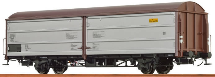 By the middle of the 1960s, DB procured numerous special wagons with a sliding roof and sliding walls. However, examinations proved that, in many cases, it was possible to forego the opening roof and that an optimized access from the side was sufficient for the majority of cargoes. Consequently, the Hbis 299 which was still initially called the Klmmgs was built from 1966 onwards. To a large extent, the design corresponded to the previously built Tbis 869 sliding roof wagons; the accessibility to the corner was primarily improved. The centre column only had a width of 320 mm; this width amounted to 1000 mm on the sliding roof wagons. The wagons proved themselves in operation and were accepted by the loaders. 2,950 units had already been built by 1970 and the maximum quantity of 8,444 units was reached in 1975. From 1974 onwards, the wagons were equipped with spark arrestor plate ex works; a percentage of the older wagons were retrofitted with this component. From 1984 onwards, they obtained the national secondary genre letters –ww. Approximately half of the built wagons were equipped with the “Daberkow” transport protection equipment system.They became Hbis-t from 1979 onwards and became Hbils from 1984 onwards. However, all of the transport protection equipment was remoted from the mid-1980s. In return, 754 wagons obtained reinforced, lockable separating walls in 1991 and, from that point on, were given the designation Hbills-x. In 1994, DB AG assumed 8,403 BA 299 wagons of all types. In 2000, 2,500 wagons were still being operated by “Railion”, the Hbis-ww accounts for the largest share with approx. 2,700 wagons. Eight years later, just over 1,000 Hbis-ww and 90 Hbillsx were still being kept for goods traffic. In association with newer sliding wall carriages, they are now particularly striking thanks to their almost delicate appearance. The original color was unpainted aluminium and the undercarriage was black. This lead to the development of all shades of contamination conditions during operation; address fields are bright or dark shadowed and even both in some cases in the event of a new lettering. To some extent, rented wagons contained the advertising lettering of the adjuster.