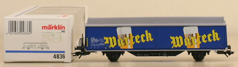 Marklin #4836 freight car "Warteck". Model is in like new condition with original packaging.