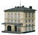 Three-storey building with wide entrance stair, entrance doors to be opened and parcel loading ramp annexed on the rear side.