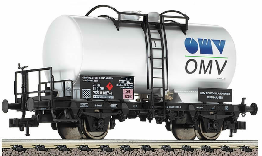 Tank wagon "OMV", in service of the DB AG, with brake platform. Overall length: 101 mm. Super-detailling, -livery and -lettering. Epoch V.