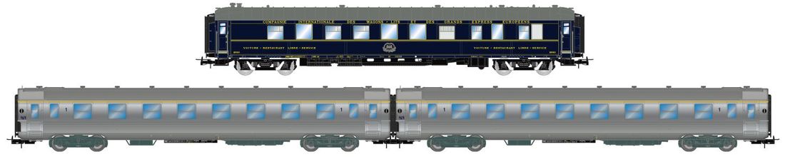 3-piece "Sud Express" set with one CIWL dining car and 2 x DEV Inox short
