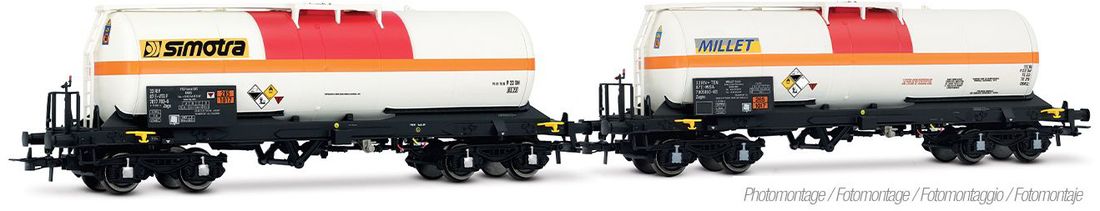 2-piece set of chlorine tank wagons 1x "Millet" of F-MISA and 1x "Simotra" of F-VTG