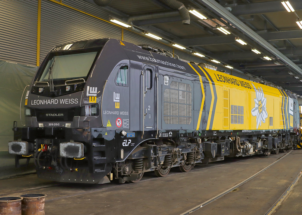 Prototype: Dual-mode locomotive class 2019 (Stadler Euro9000) of European Loc Pool AG (ELP), leased to Leonhard Weiss GmbH & Co. KG, Göppingen. Gray/yellow livery. Road number 2019 310-2. Operating condition from March 2026.