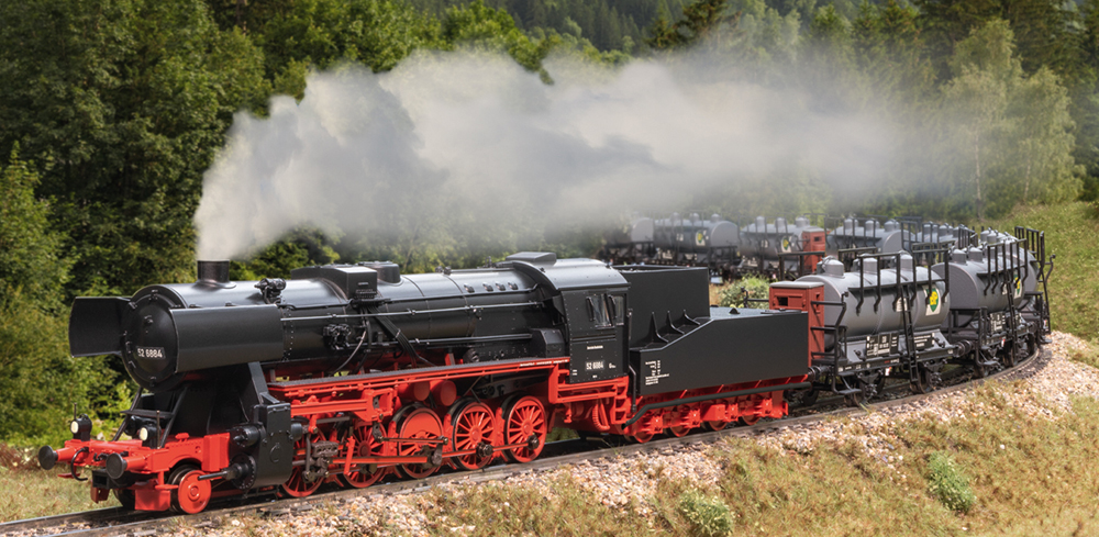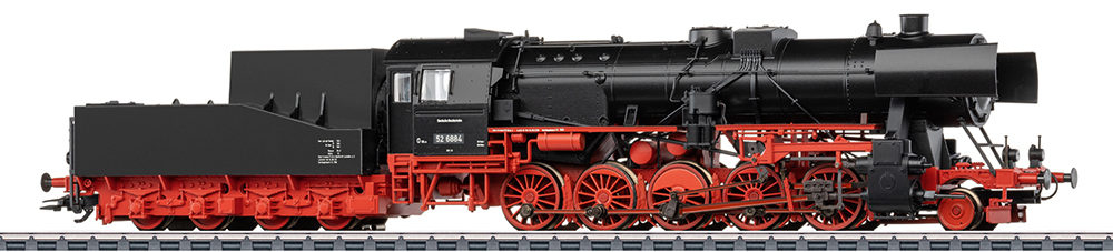 With mfx+ digital decoder and extensive sound functions. Controlled high-efficiency propulsion with flywheel in the boiler. 5 axles powered. Traction tires. Locomotive and rigid-frame tender largely made of metal. Equipped for smoke generator 7226. Directional two-light headlights and retrofittable smoke generator operate conventionally; digitally switchable. Cab lighting is also digitally switchable. Lighting with maintenance-free warm white LEDs. With energy storage device.