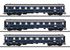 Prototype: Three German Federal Railroad (DB) standard design express passenger cars from 1928 to 1930 (Application Group 29). Three type AB4ü-28 express cars, 1st/2nd class. Train route: Hannover - Hamm (W) – Wuppertal – Cologne as F Train F 14 "Dom Pfeil" / "Cathedral Arrow". Steel blue basic paint scheme. The cars look as they did in 1952.