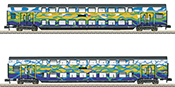 Prototype: Electric locomotive, road number 103 222-6, painted and lettered for RailAdventure GmbH, Munich, and looking as it does in era VI. Agate gray/traffic gray basic paint scheme. C-C wheel arrangement. Car prototype: Railadventure type SRmz (former AD4üm-62) “LUXON” express train vista dome car.