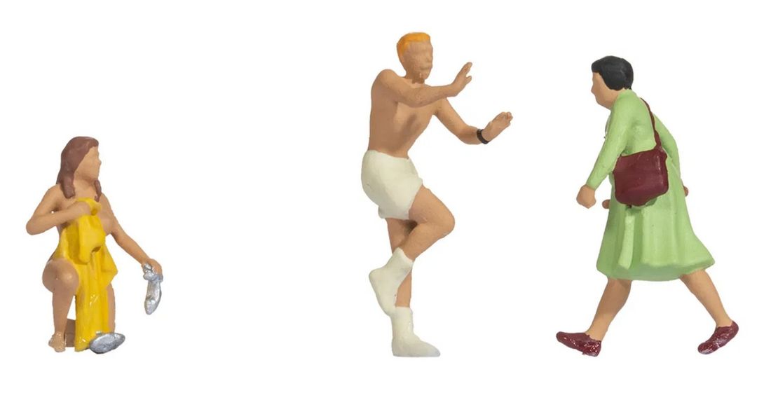 With the “In Flagranti” Funny Scenes figure group, NOCH brings a cheeky, humorous scene to your model railway layout! Things are hotting up here - but the moment is abruptly interrupted: A couple is caught in an intimate situation, causing embarrassed expressions and wide eyes! The man, still quite surprised, looks up in shock, while the lady, in a kneeling pose, tries to make the best of the unexpected situation. while a lady approaches him with a determined expression - whether as a stern wife or a zealous guardian of order, it's up to your imagination! This scene is perfect for all model building enthusiasts who want to add a humorous wink to their dioramas. Whether near a campsite, in a city park or as a hidden detail - Funny-Scenes “In Flagranti” provides a smile and a talking point on every layout. NOCH stands for authentic figures with a pinch of humor and many loving details.