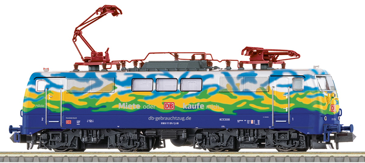 Prototype: Class 111 074-1 multi-purpose electric locomotive of Deutsche Bahn AG (DB used train) in tourist livery, in its current operating condition. Locomotive name: Hilde. Use: Passenger trains.